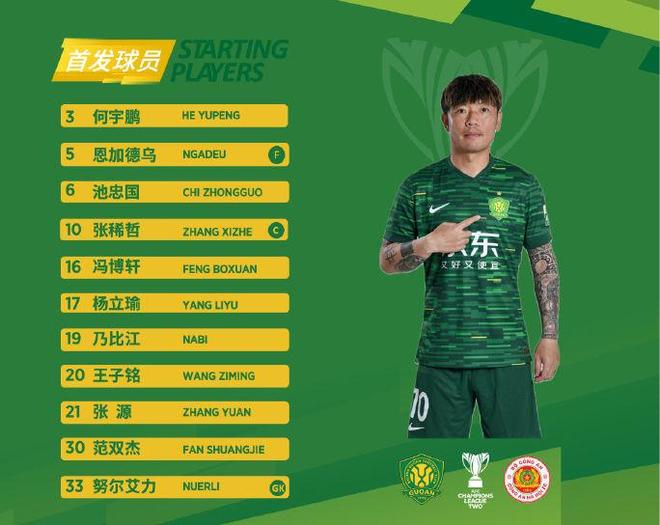 首发名单:33-努尔艾力-阿巴斯、3-何宇鹏、5-恩加德乌(F)、19-乃比江-莫合买提、30-范双杰、16-冯博轩、6-池忠国、10-张稀哲、21-张源、17-杨立瑜、20-王子铭