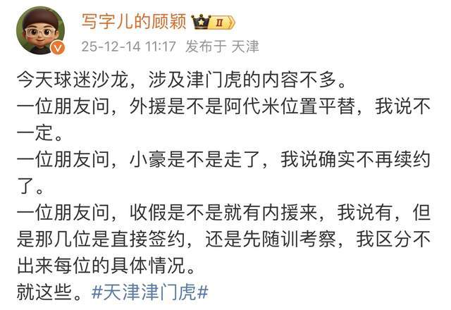 只有在失去的时候才知道珍惜,在队内的时候被球迷看不上,树挪死人挪活,或许杨梓豪在其他球队,会有进步。天津津门虎阵容过于单薄,需要进行一定程度上的补强,媒体人顾颖表示,在冬训开启之后,将会有球员来试训。津门虎签约球员一向谨慎,大部分内援都得先试训,这意味着很难有令人惊喜的内援加盟,没大手笔了,于根伟继续指望着“捡漏”,球队引援竞争力不足。